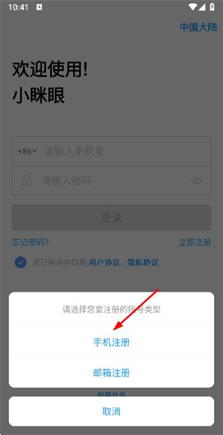 1、在登录页面点击立即注册选项,弹出注册方式窗口。