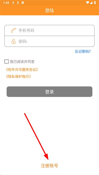 2、在登录界面底部,找到注册账号选项并点击,进入注册页面。