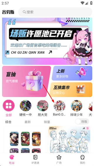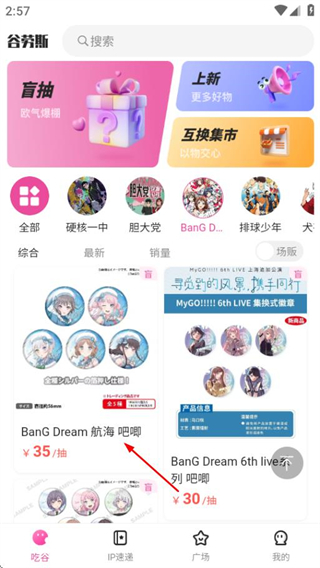 1、在谷劳斯首页,点击目标IP分类,进入对应IP的商品页面。
