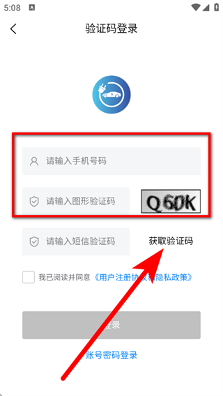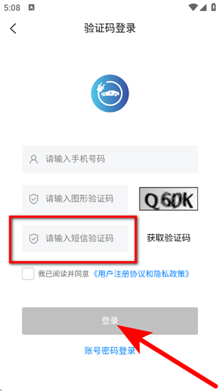 4、在输入框,输入短信验证码,勾选相关协议后,点击登录,完成登录。