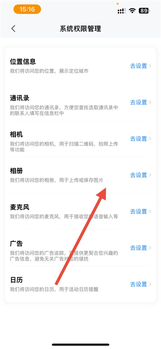 4、在页面,即可查看并管理位置信息、通讯录、相机等系统权限。