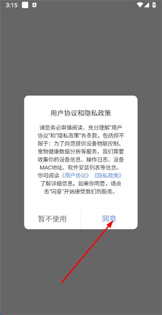 1、在使用协议隐私政策弹窗中点击同意按钮,进入登录页面。