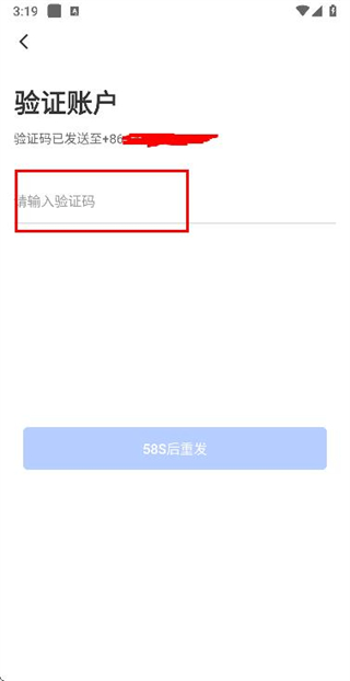 3、在输入短信验证码页面填写收到的验证码,完成账号的登录操作。