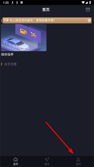 1、在智慧传祺app界面,点击底部我的选项,进入个人我的页面。