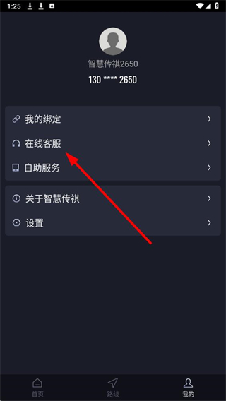 2、在个人页面中,找到在线客服选项并点击,跳转至在线客服的对话交互界面。
