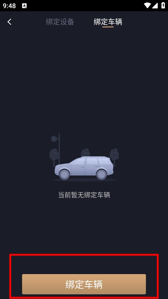 3、进入后选择绑定车辆,在绑定车辆页面点击下方绑定车辆按钮。