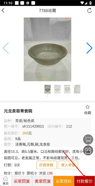 3、在商品详情页面点击付款报价按钮,进入该商品的交易流程。