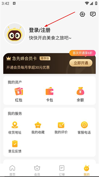 2、在个人页面中,点击登录/注册区域,进入急先锋的登录页面。