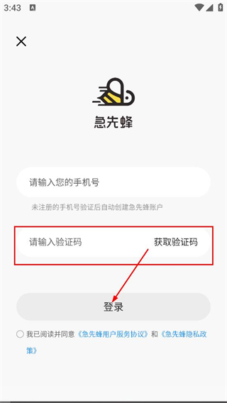 4、点击获取验证码,将收到的验证码填入输入框,点击登录,完成账号登录。