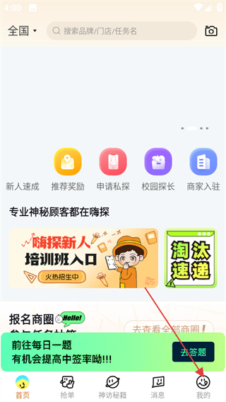 1、在嗨探首页,点击底部的我的选项,进入个人中心页面。