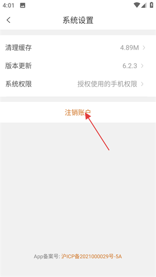 4、在系统设置页面,点击注销账户选项,进入注销确认页面。