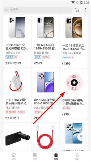 2、在商城页面中,找到目标商品,点击进入商品详情页。