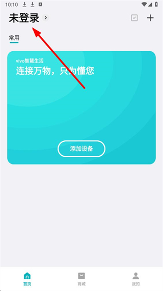 1、在智慧生活界面,点击左上角未登录区域,进入vivo账号登录页面。