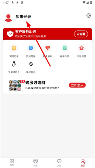 2、进入对应页面后,点击暂未登录区域,跳转至账号登录的选择界面。