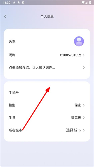 3、在个人信息页面,可对昵称、介绍、性别等信息进行修改,点击对应选项即可进入编辑状态。