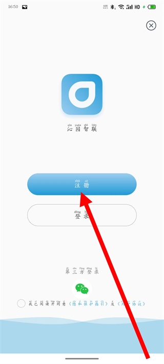 3、在登录注册页面,点击注册按钮,进入注册流程页面。