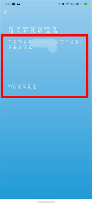 5、在输入短信验证码页面,填写收到的6位验证码,完成账号注册。