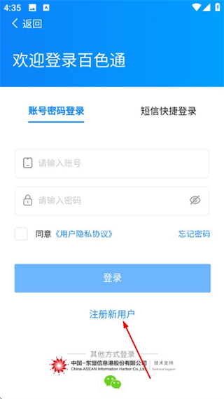 3、在登录页面,点击注册新用户选项,进入注册页面。