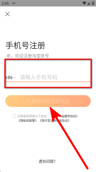 3、在手机号注册页面,输入手机号码,点击对应按钮。