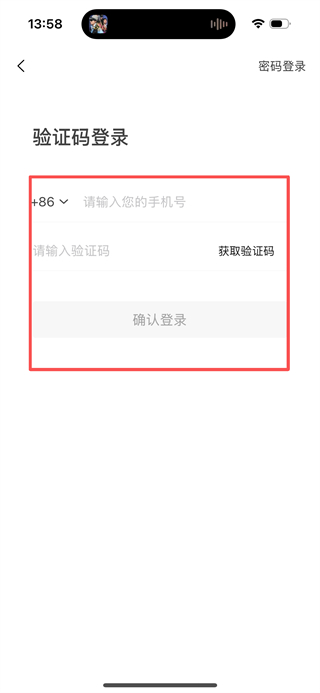 3、在验证码登录页面,填写信息后点击确认登录按钮,完成账号登录。