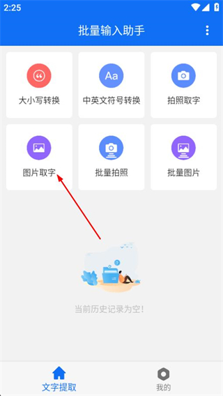 1、在批量输入助手首页,点击图片取字选项进入图片选择界面。
