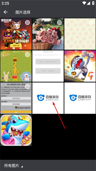 2、在图片选择界面,选中目标图片完成图片选取操作。
