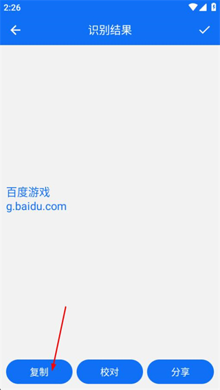 3、在识别结果页面,点击复制按钮将识别出的文字复制到剪贴板。