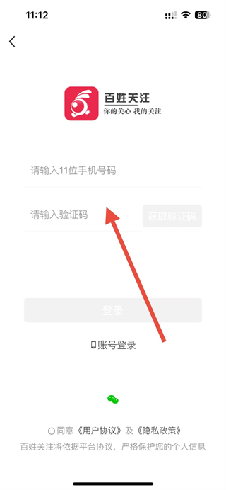 4、在手机登录界面,输入手机号、获取并填写验证码,勾选协议后点击登录,即可完成账号登录。