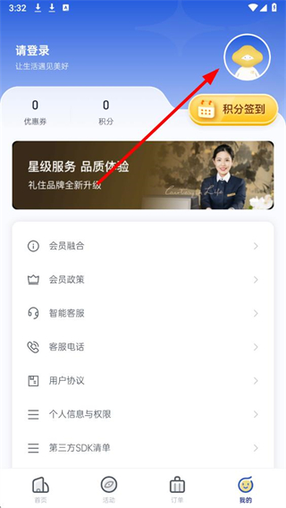 1、在银座酒店app界面,点击我的选项,进入个人中心页面。