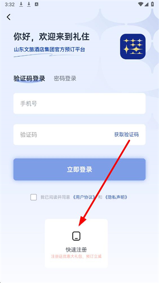 3、在登录界面,找到快速注册选项并点击,切换至新用户注册的信息填写页面。