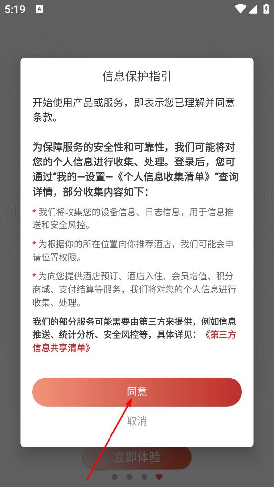 1、打开心里美APP,弹出信息保护指引弹窗,仔细阅读后点击“同意”按钮,进入APP界面。