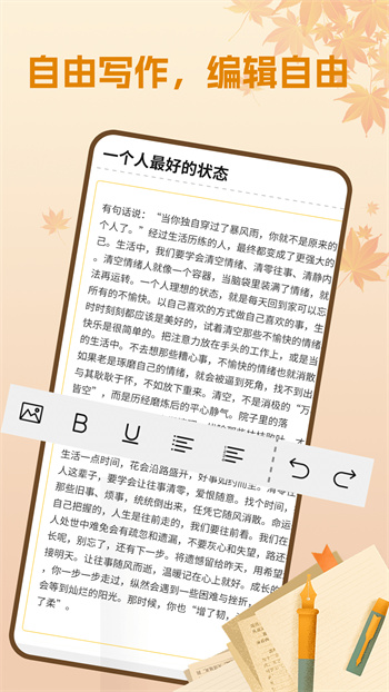 - 多种写作资料素材,让你的写作触手可及,每天都能在线创作,有需要随时找回,告别找资料的烦恼。