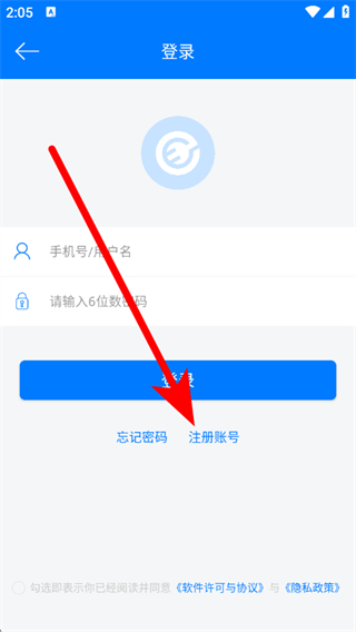 2、在登录页面,点击下方的注册账号,进入注册页面。