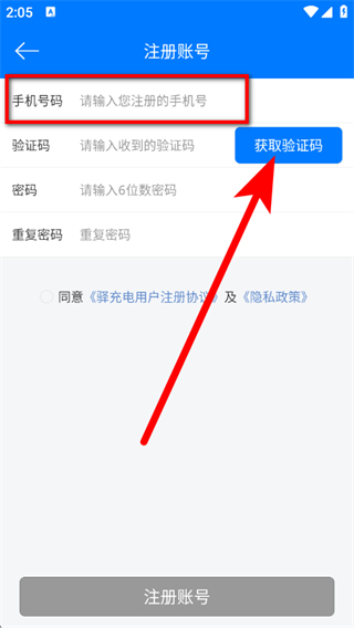 3、在注册账号页面,输入手机号,点击获取验证码。