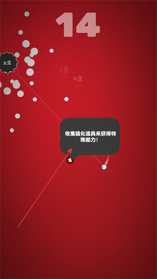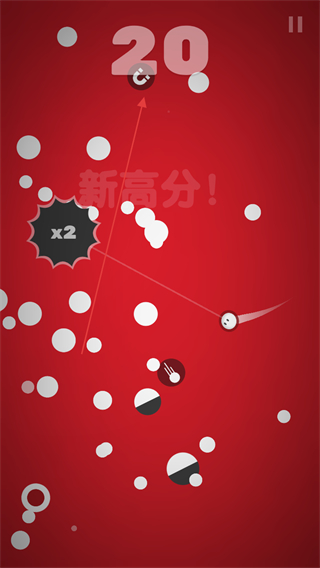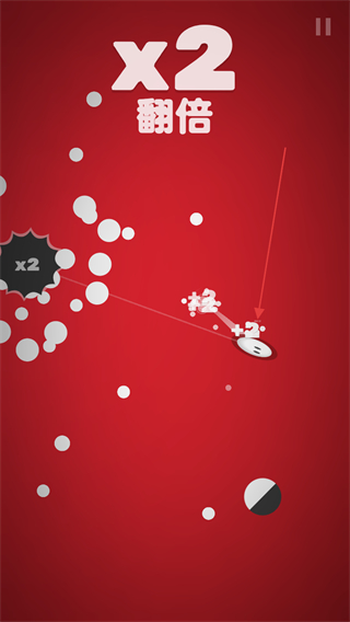 1、操控小球碰撞白色圆点,触发x2翻倍效果,积累数值推进游戏。