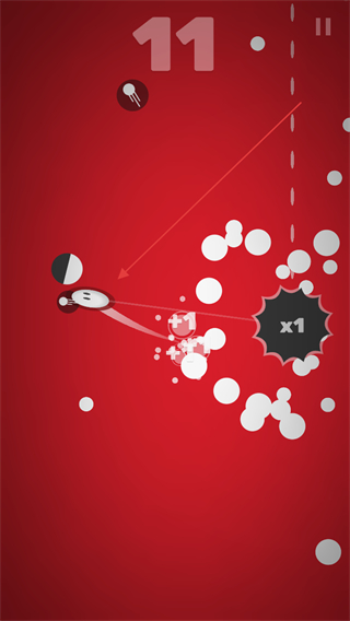 3、操控小球碰撞圆点,触发x1效果,积累数值维持游戏进程。