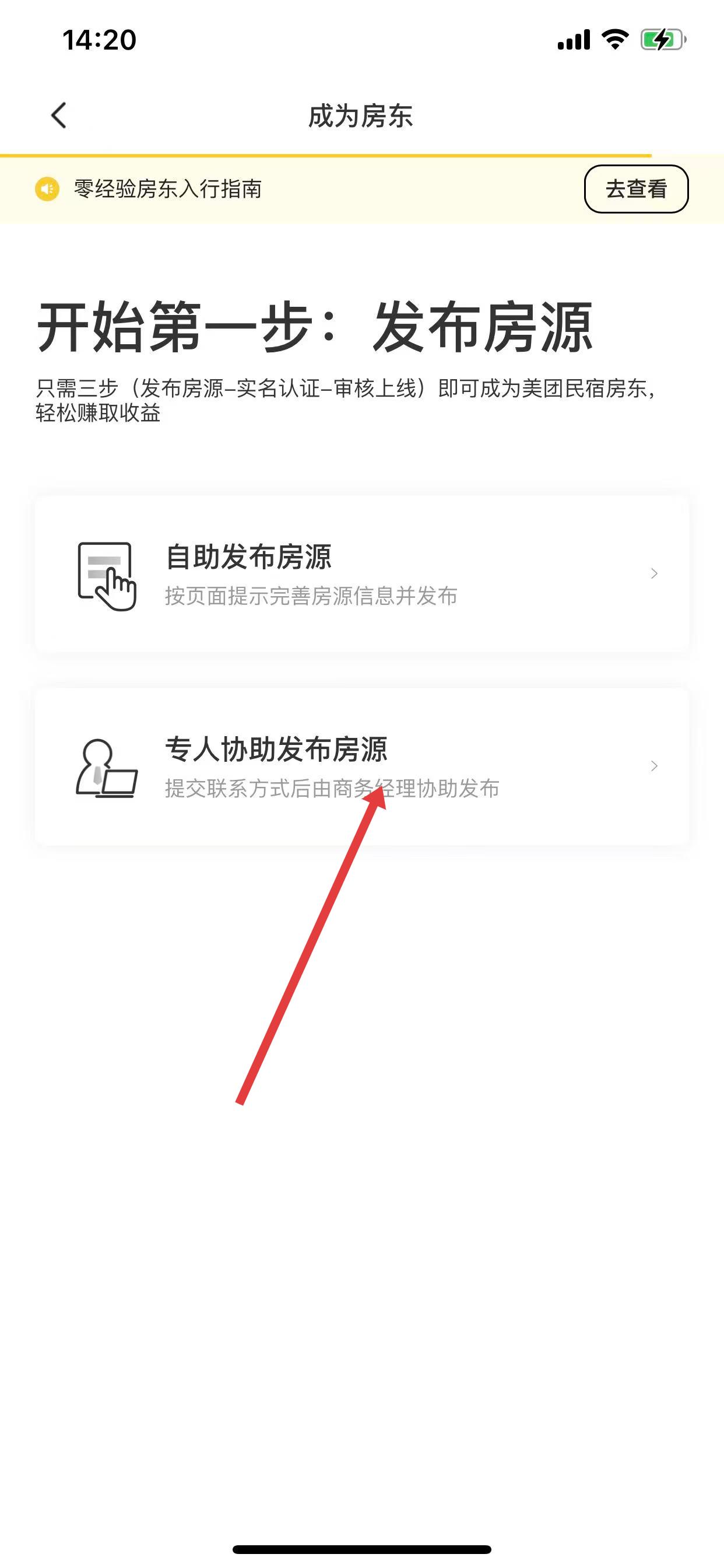 3、进入成为房东页面后,选择专人协助发布房源。