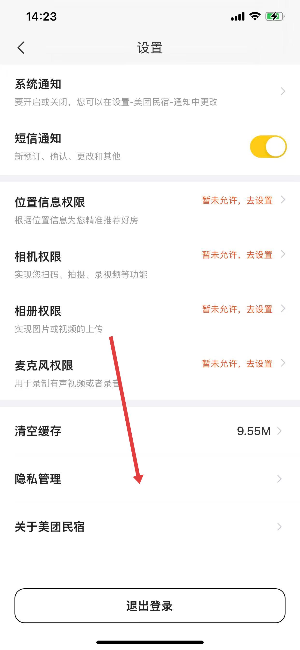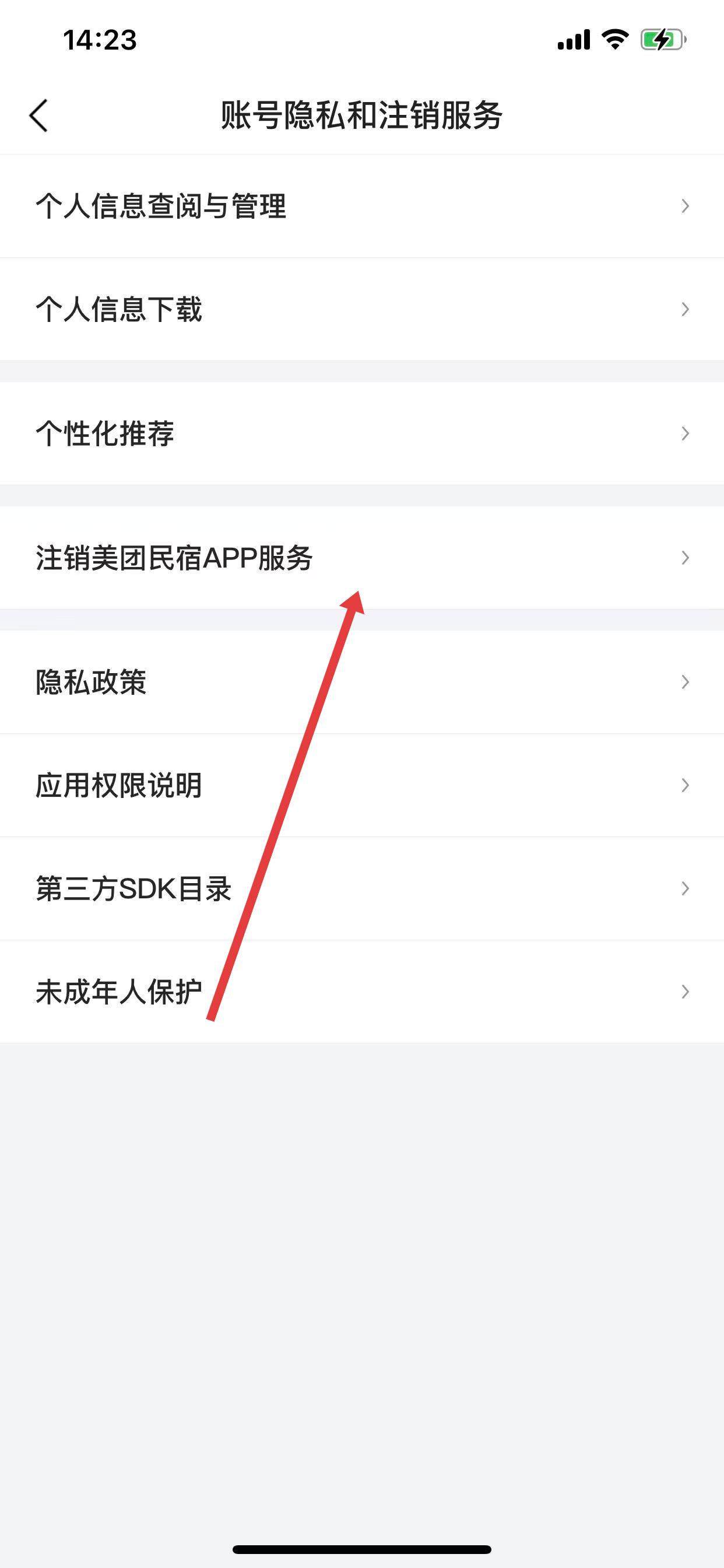 4、在隐私管理页面,点击注销美团民宿APP服务选项。