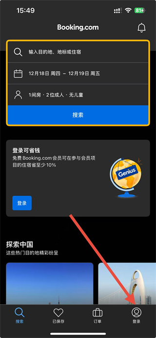 -输入城市、地标、酒店名称,轻点一下开始搜索。