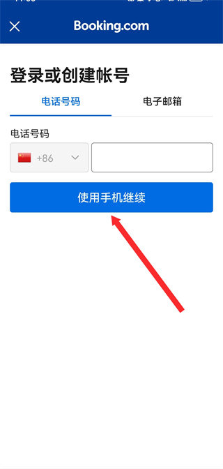 1、进入登录界面,点击使用手机继续,选择手机登录方式。