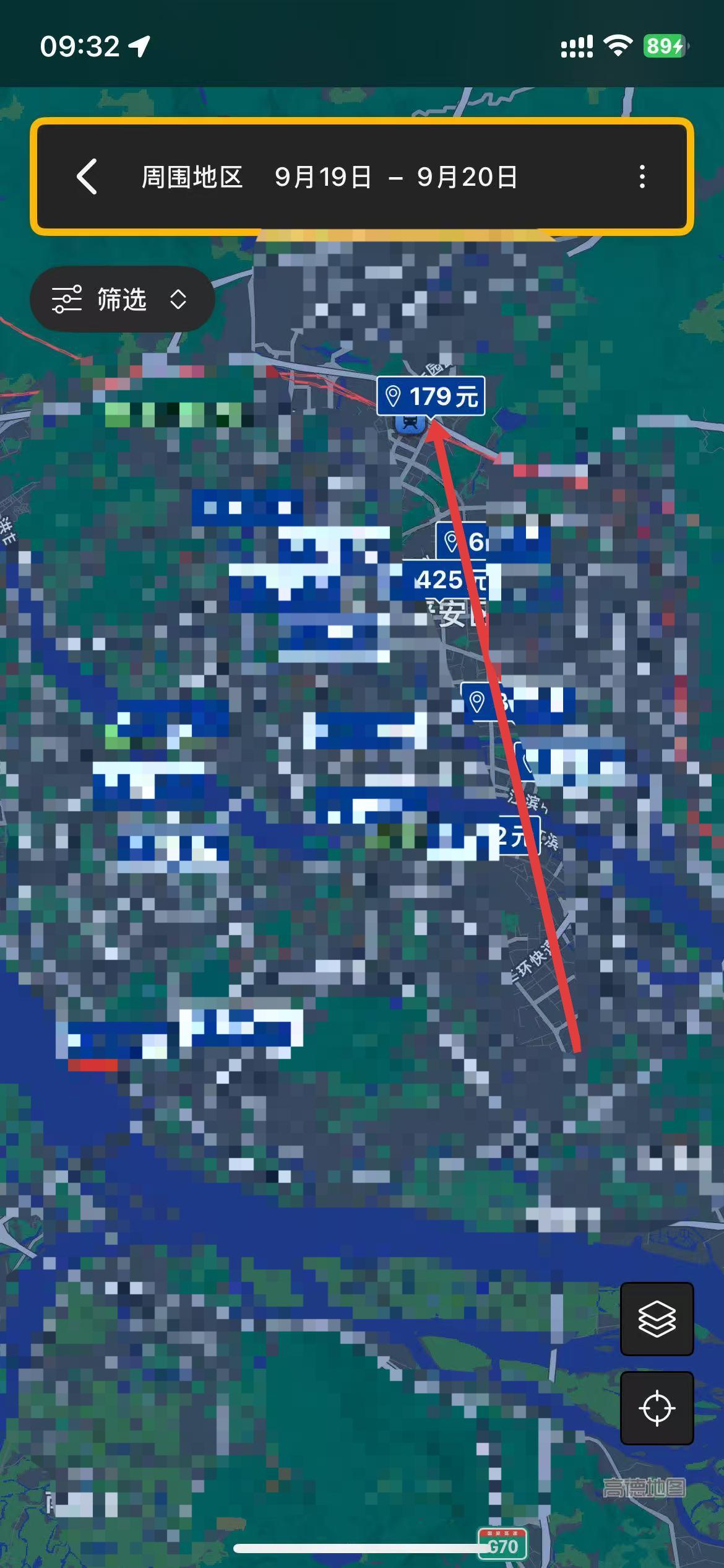 3、在地图界面,浏览不同区域房源分布,点击感兴趣的房源标记。