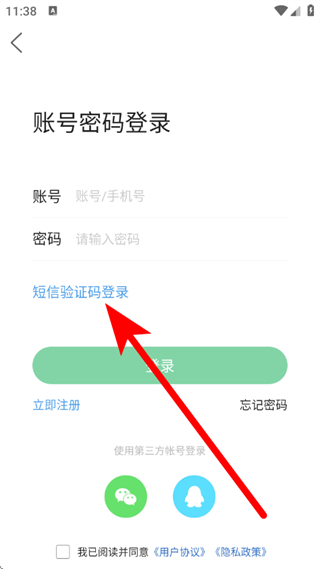 3、在登录页面,点击短信验证码登录,进入验证码登录页面。