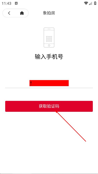 4、在输入手机号页面,填写手机号,点击获取验证,获取登录验证码。