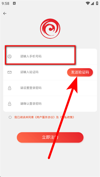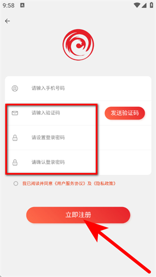 4、输入验证码,设置登录密码,勾选相关协议后,点击立即注册,完成注册。
