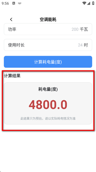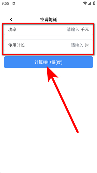 3、在空调能耗页面,输入千瓦和使用时长,点击底部计算耗电量。