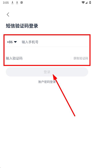 3、在短信验证码登录页面,输入手机号,获取验证码,点击登录按钮,即可完成登录操作。
