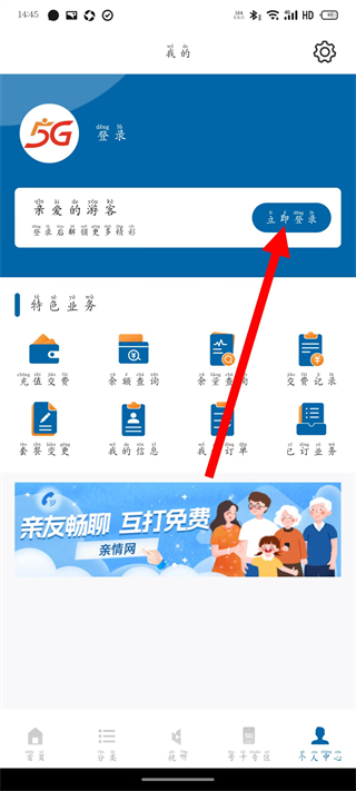 2、在个人中心页面,点击立即登录按钮,进入登录页面。