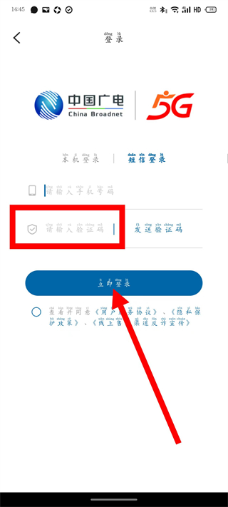 4、输入验证码,勾选相关协议后,点击立即登录,完成登录。