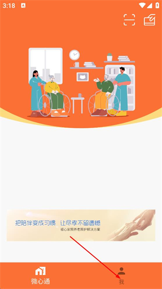 2、在微心通首页,点击底部的我选项,进入登录操作界面。