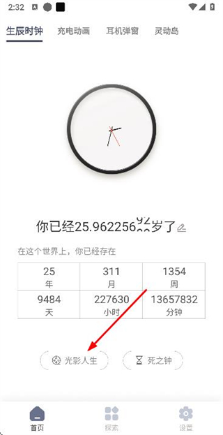 3、在生辰时钟结果页面点击光影人生选项,查看光影人生视频展示。